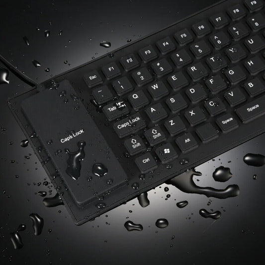 Full-Size Waterproof Silicone Keyboard - Foldable, Flexible, USB, Dustproof, and Dirtproof